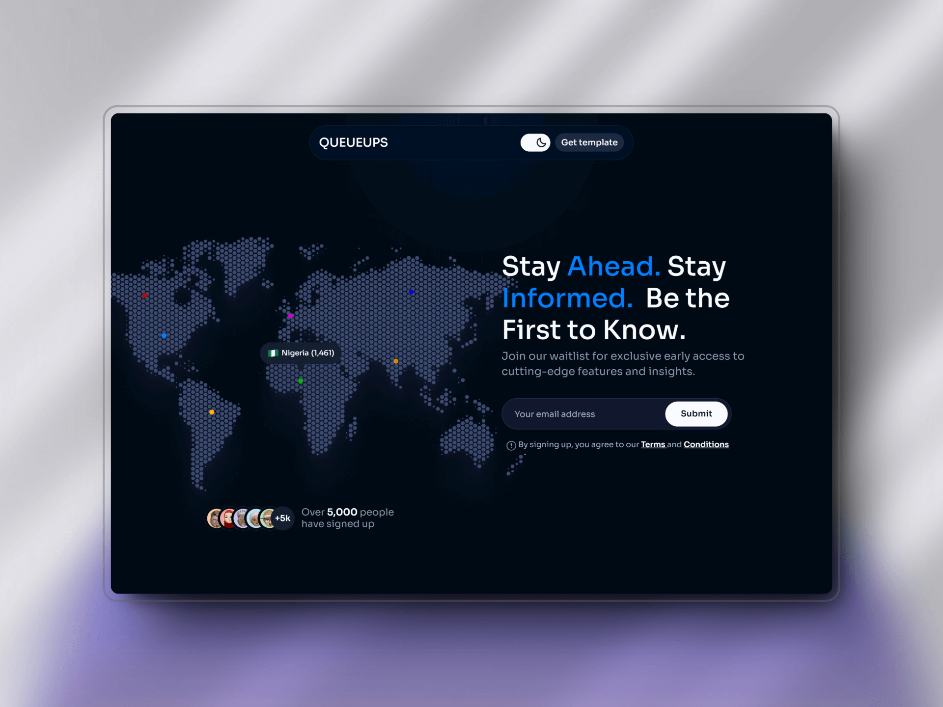 A fully responsive waitlist template built for creators, startups, and tech-forward brands.